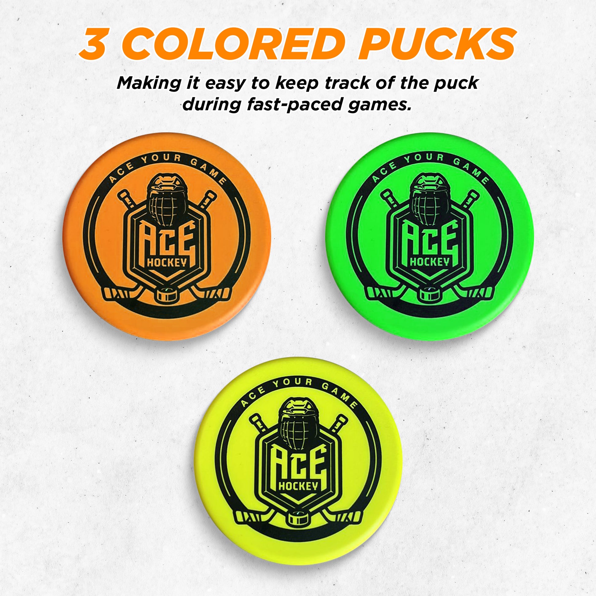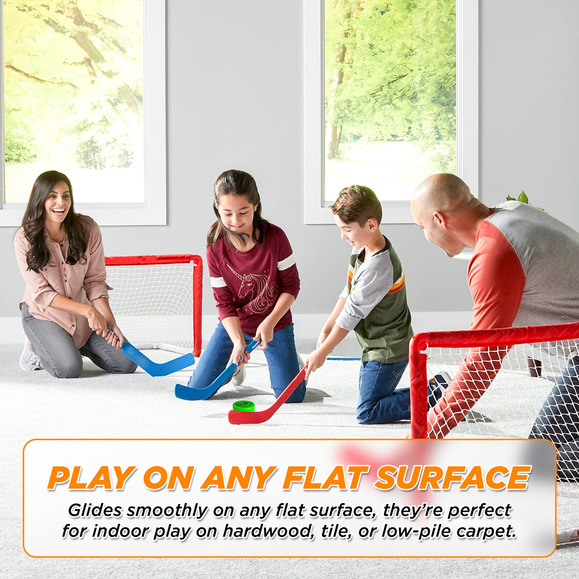 - SET OF 3 PUCKS: Enjoy a set of 3 foam pucks, perfect for extended play on any flat surface. Glide effortlessly on carpet, hardwood floors and tiles.