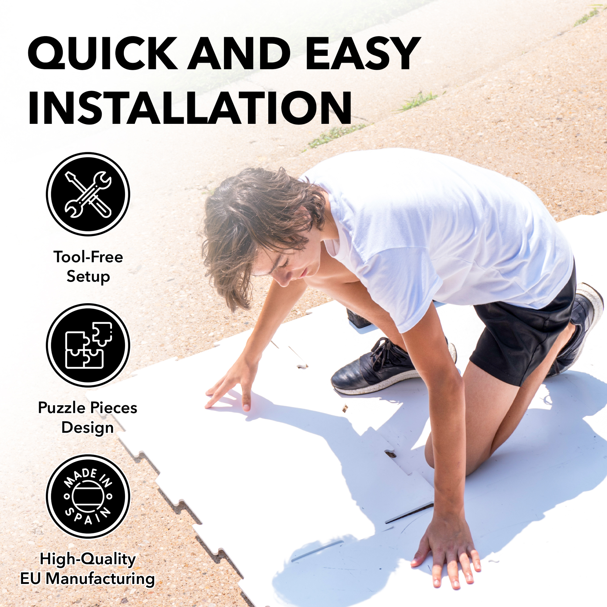 - GET THAT REAL ICE FEEL: Our floor panels are easy to assemble so you can create a world-class ice hockey rink for training in just minutes. Each tile is 5 sq. ft.