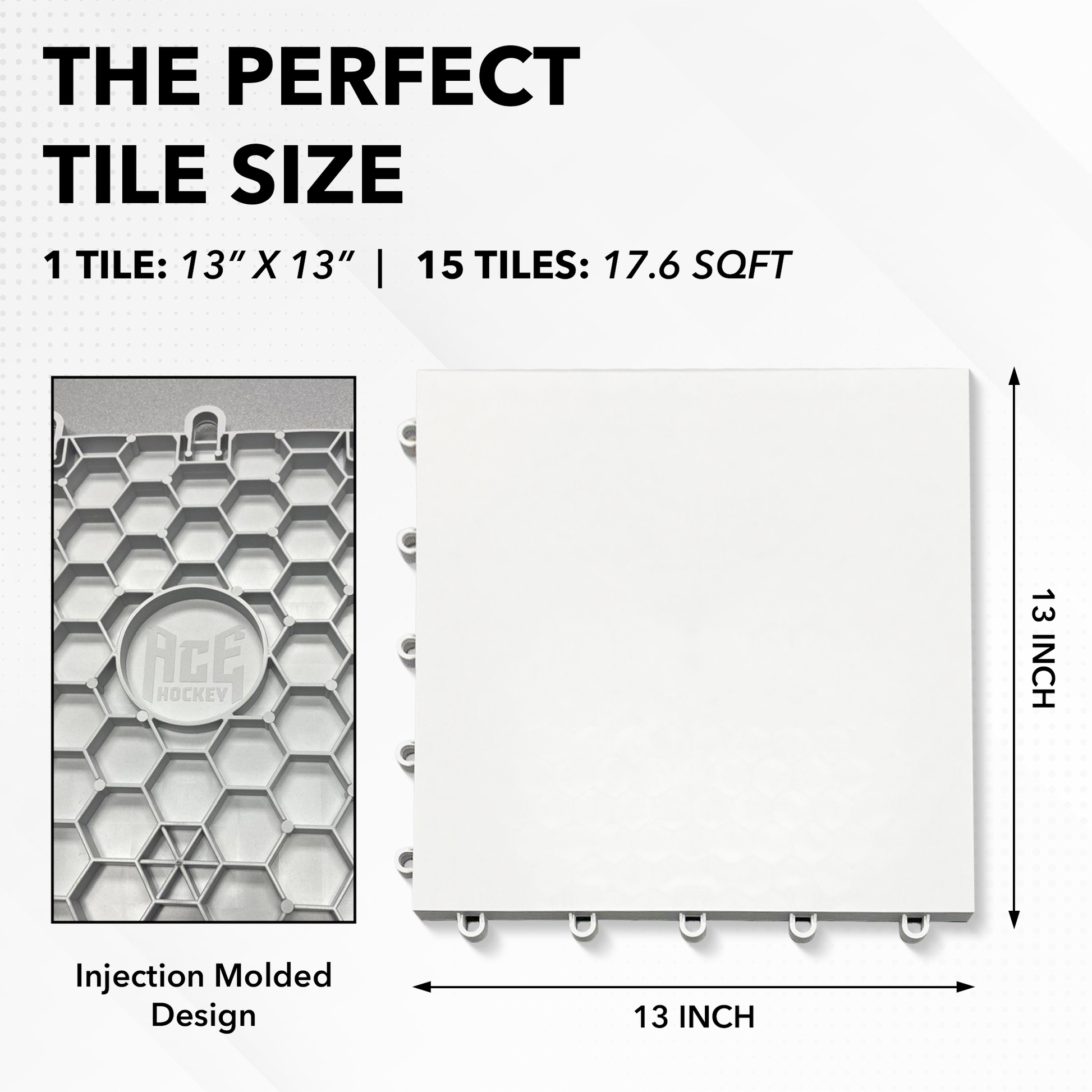 - QUICK AND EASY SETUP: Create your ideal hockey training space in minutes with our simple interlocking design. Each tile measures 13"x13" and can be easily disassembled for storage.
